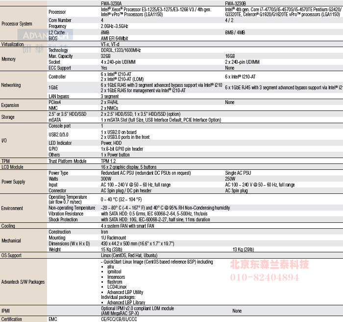 Supports four DDR3L Un-buffered 1333/1600 DIMMs, up to 32 GB (FWA-3230A); two DDR3L Un-buffered 1333/1600 DIMMs, up to16 GB (FWA-3230B)