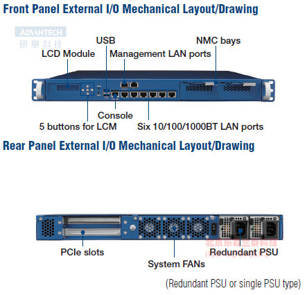 Up to two Advantech Network Mezzanine Cards (NMCs)