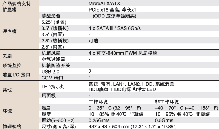 HPC-7140-00A1E | HPC-7140 1U4 bays 服务器机箱(w/o SPS) |
