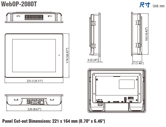 WebOP-2080T采用ARM9-based RISC高效能处理器,自带内存和闪存。并配有8" LED背光模式的LCD显示屏,本身自带的即时操作系统及研华最新推出的WebOP Designer的组态软件,使得WebOP-2080T不仅可与PLCs,运动/热控制器,变频器和传感器等多种工业设备无缝相连,完美协作,还可借助多种通讯接口与其它设备轻松相连,并可通过串口、以太网、USB下载运行数据。WebOP-2080T人机界面可与300多种PLC产品无缝兼容。支持RTC,RAM电池备份和WVGA 操作面板,确保在PLC偶尔出现故障时,系统文件依然安全。在与传统操作面板/人机界面小型SCADA系统/人机界面+通讯网关等产品进行比较时,带 WebOP Designer的WebOP-2080T兼具优异性价比和完美性能,是多元化产品市场中理想的应用选择