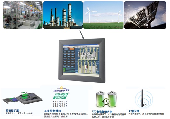 TPC-XX71系列产品均为无风扇低功耗设计,搭配英特尔凌动双核1.8 GHz处理器,4GB DDR3 SDRAM,电阻式触摸屏,丰富的I/O接口,2个RS-232光隔离串口,1个RS-422/485光隔离串口(RS-485带有自动流量控制和隔离),2个USB 2.0主机端口和2个千兆网口。为了储存数据,无风扇工业等级嵌入式平板电脑还包括:1个CF插槽和1个2.5”SATA硬盘安装槽。其前面板符合NEMA4/IP65标准,便于清理,避免损伤的风险。TPC-XX71系列是机械自动化和工厂自动化行业应用的理想选择。同时,其具备0-50℃宽泛的工作温度,其可适用于风场、光伏场等严苛户外环境。